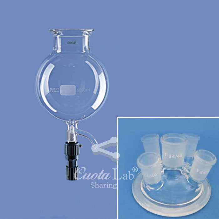 5구 콕크부 플라스크형 반응조 세트 경사형 (Reaction flask, Round bottom flask type, With cock, 5ne…